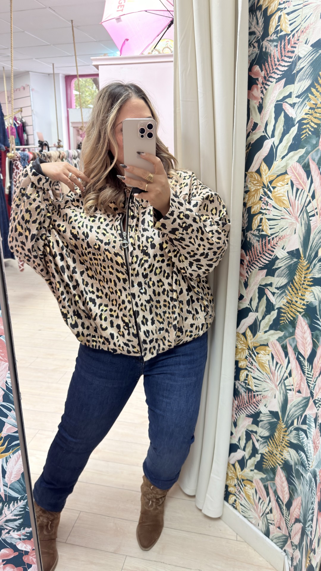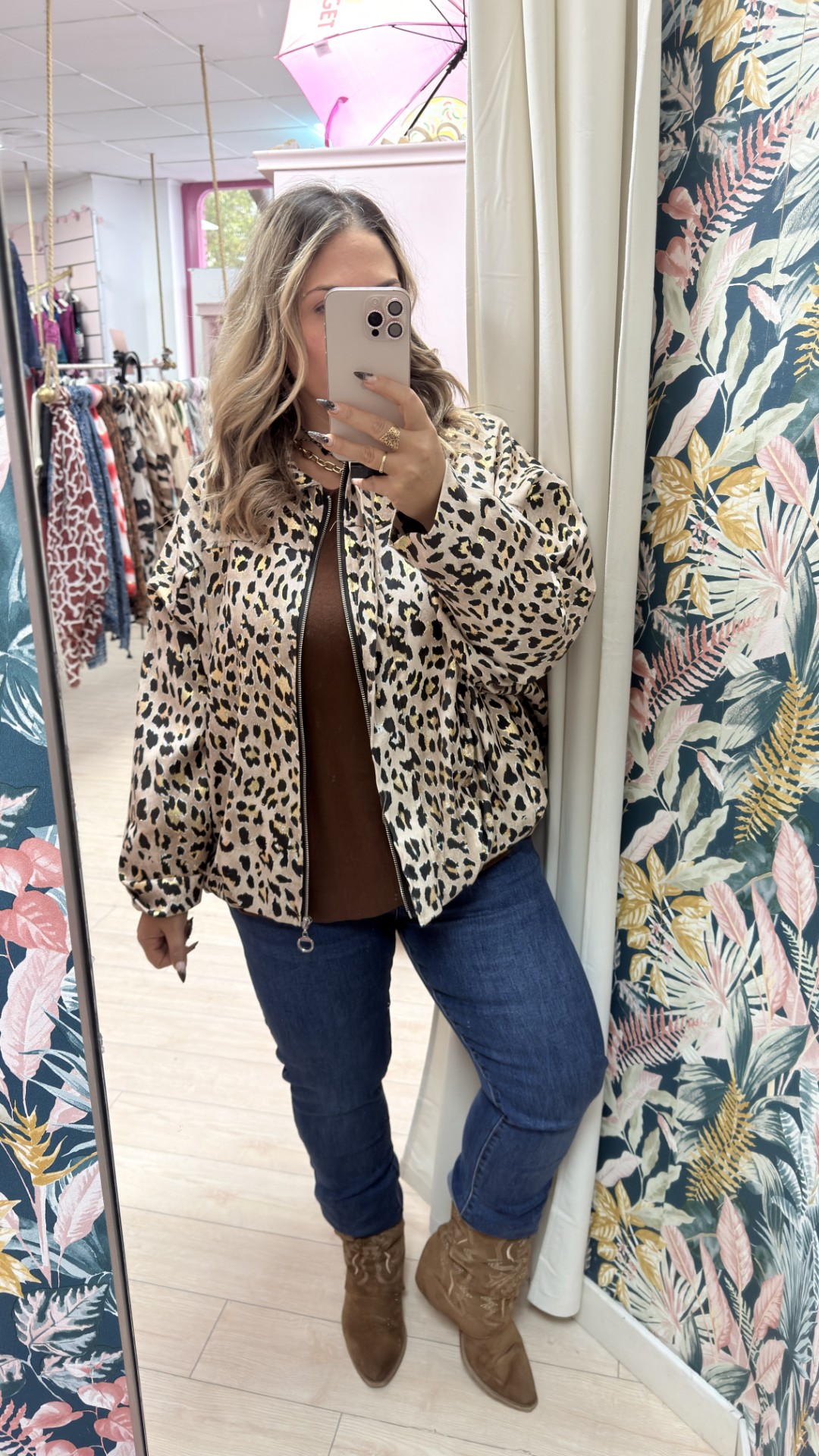Bomber leopardo Talla grande Beige