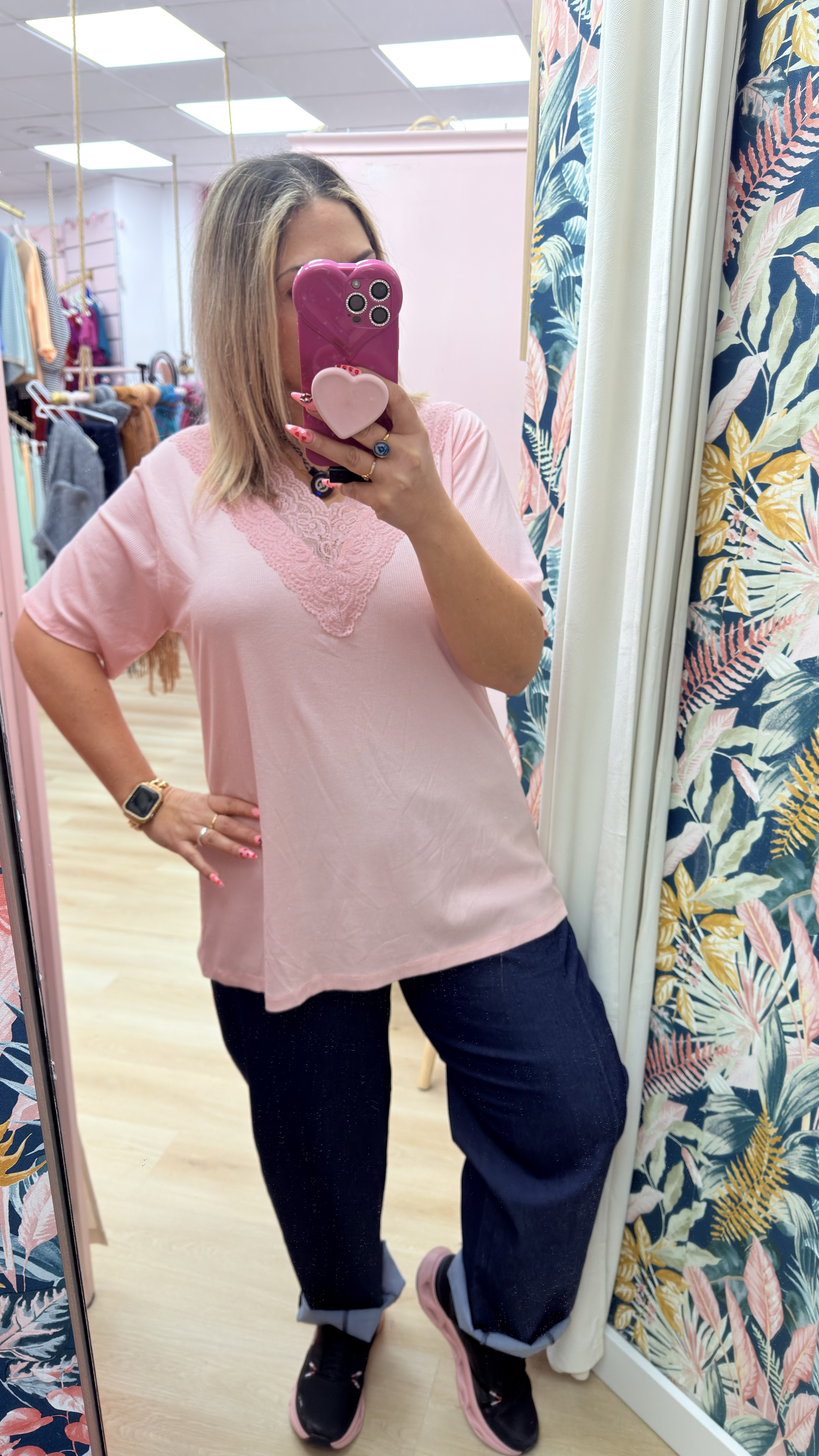 Camiseta lencera con escote de pico, elastica