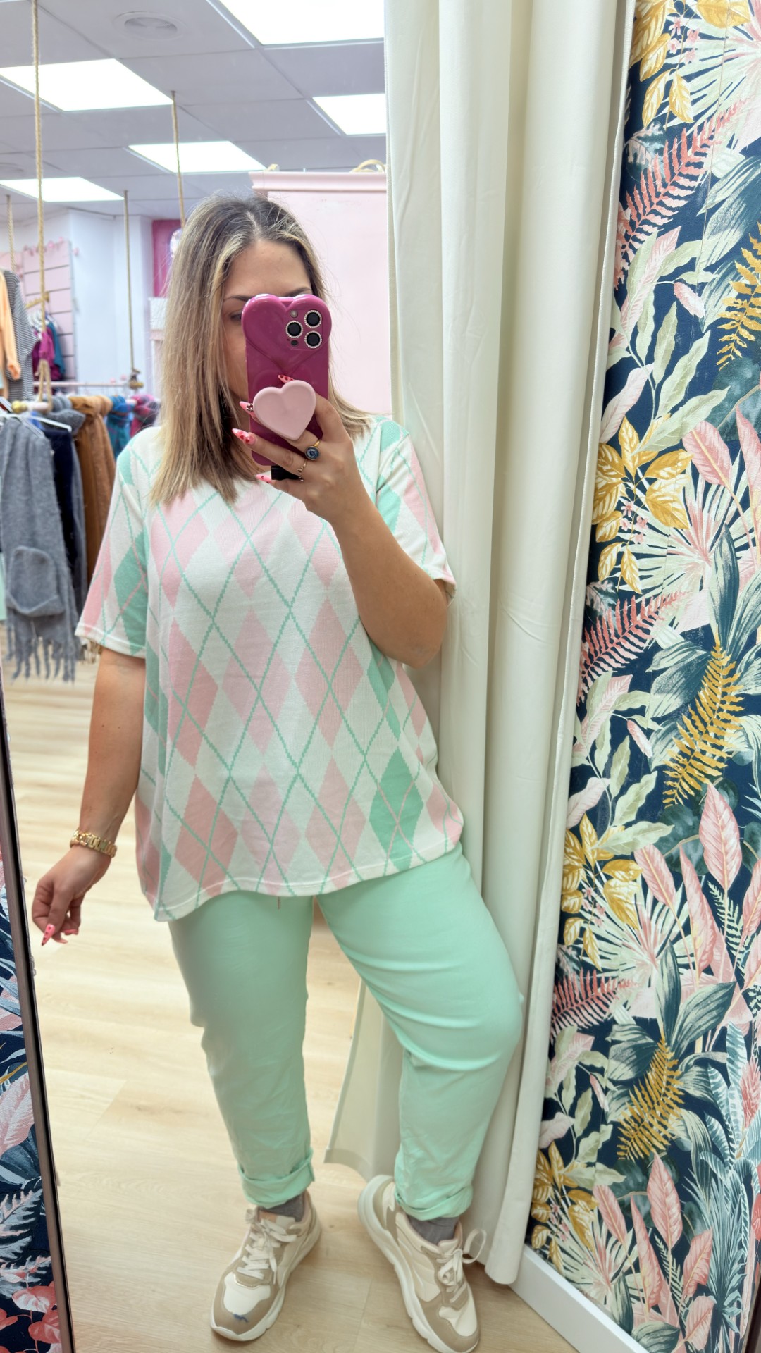 Camiseta rombos manga corta hilo verde