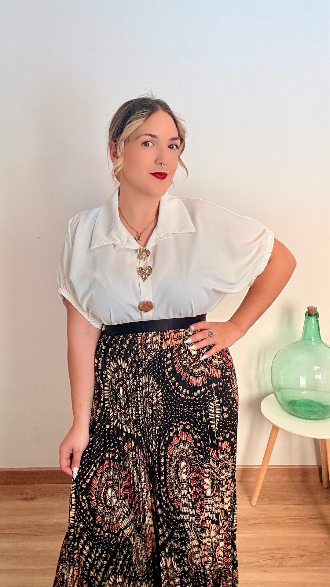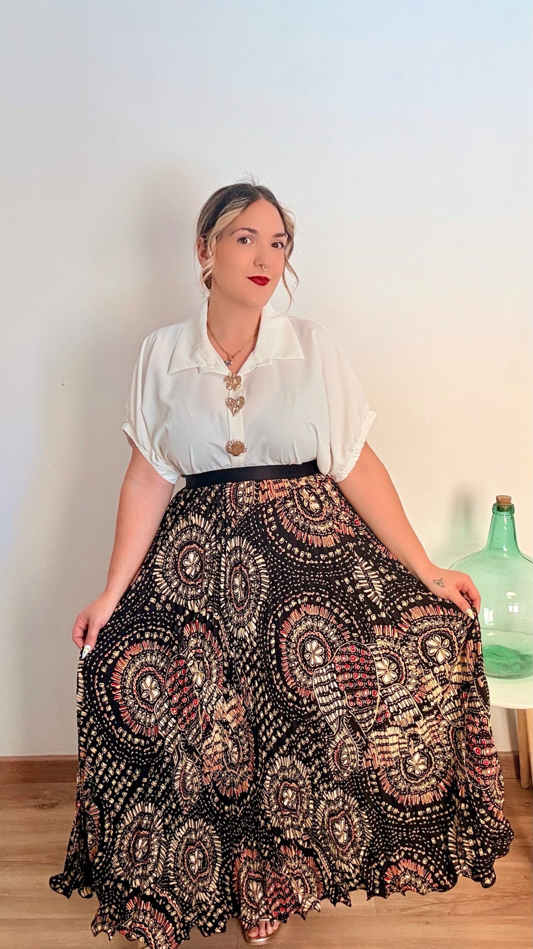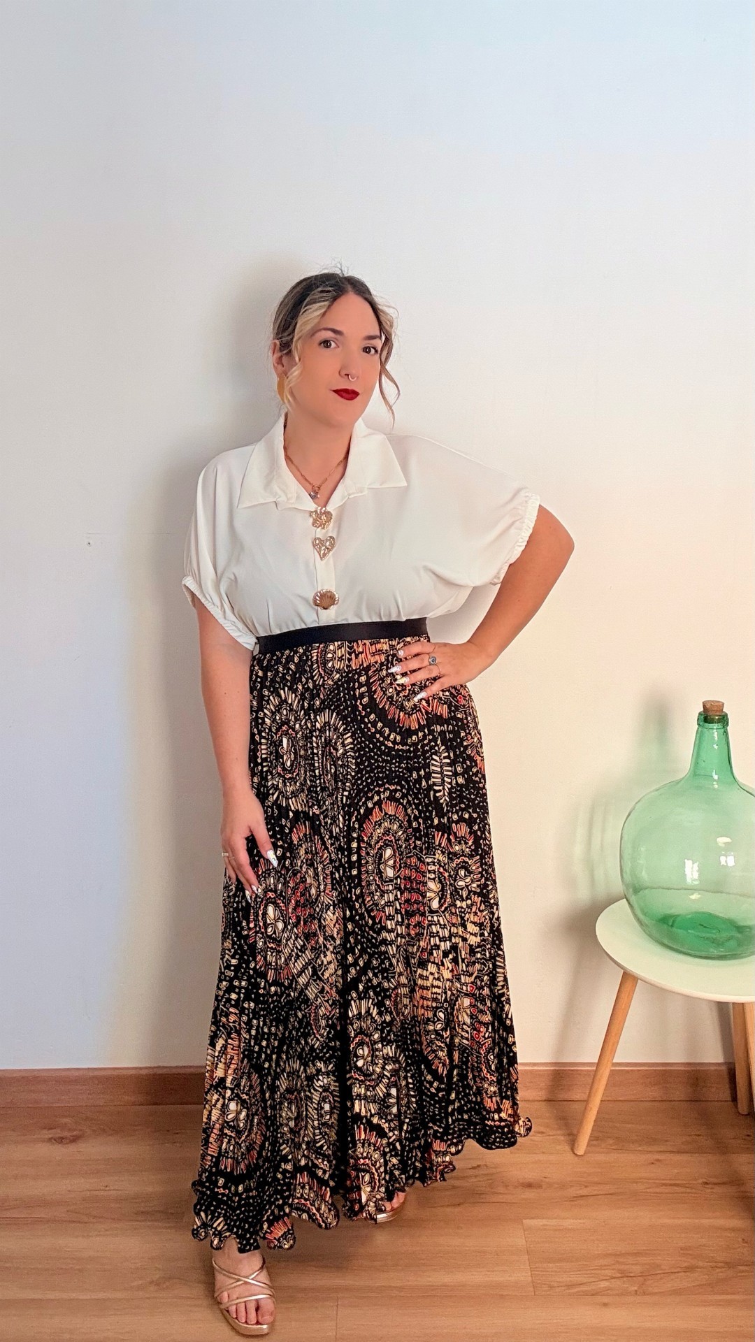 Falda con goma en la cintura plisada con estampado