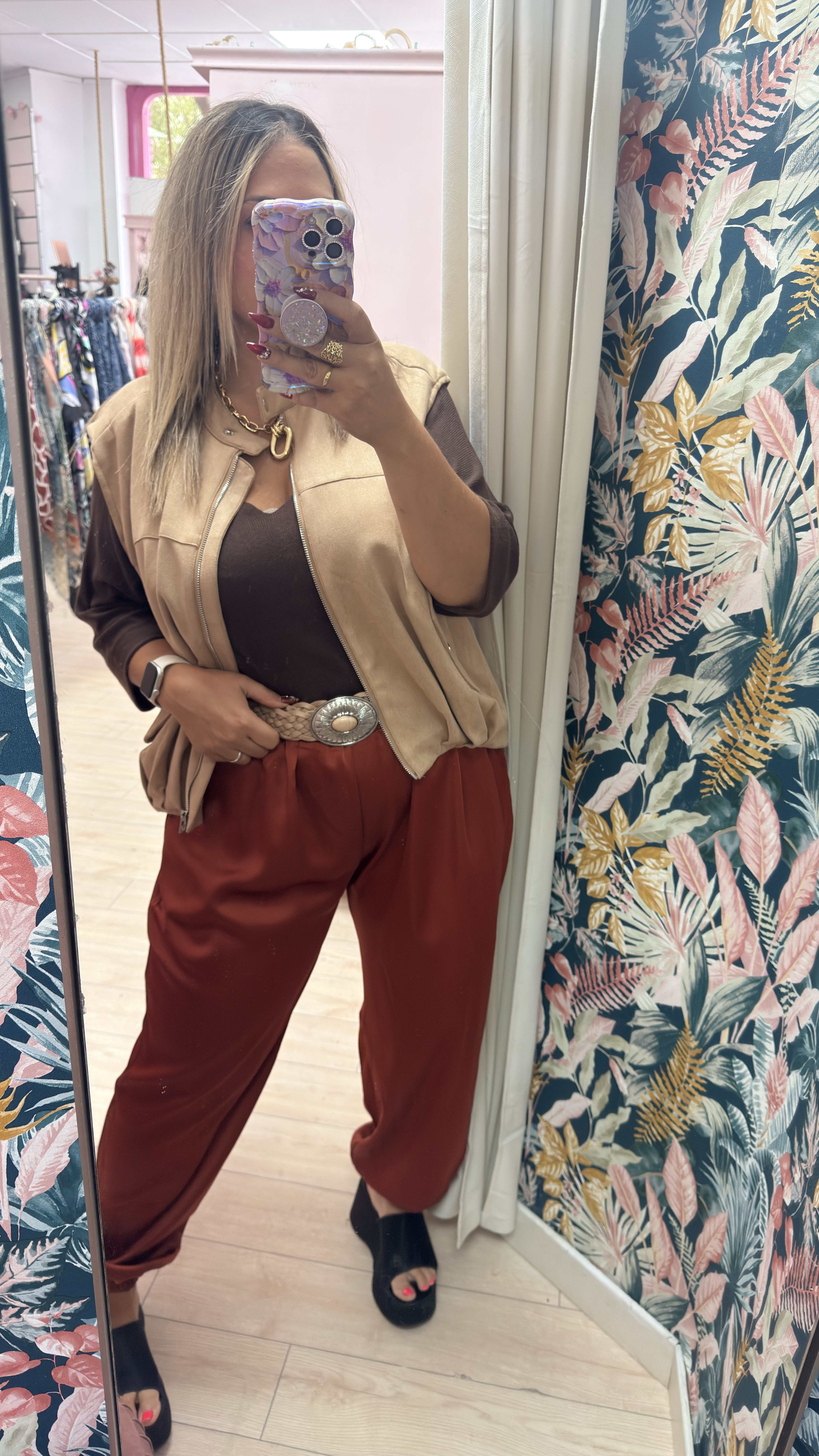 Pantalon estilo seda con bolsillos y rizo en la zona de la cintura