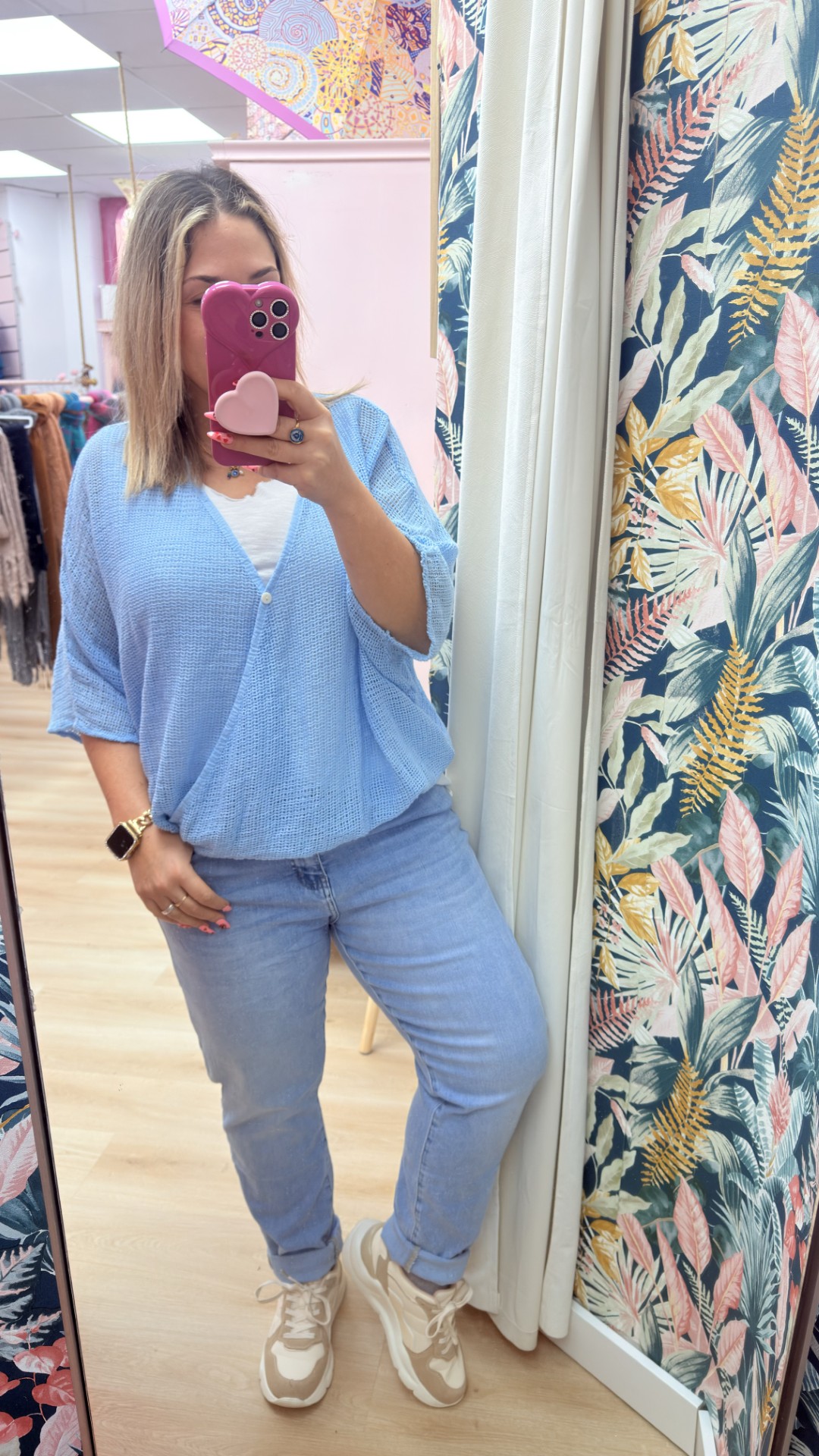 Pantalon super elastico tipo momfit con boton