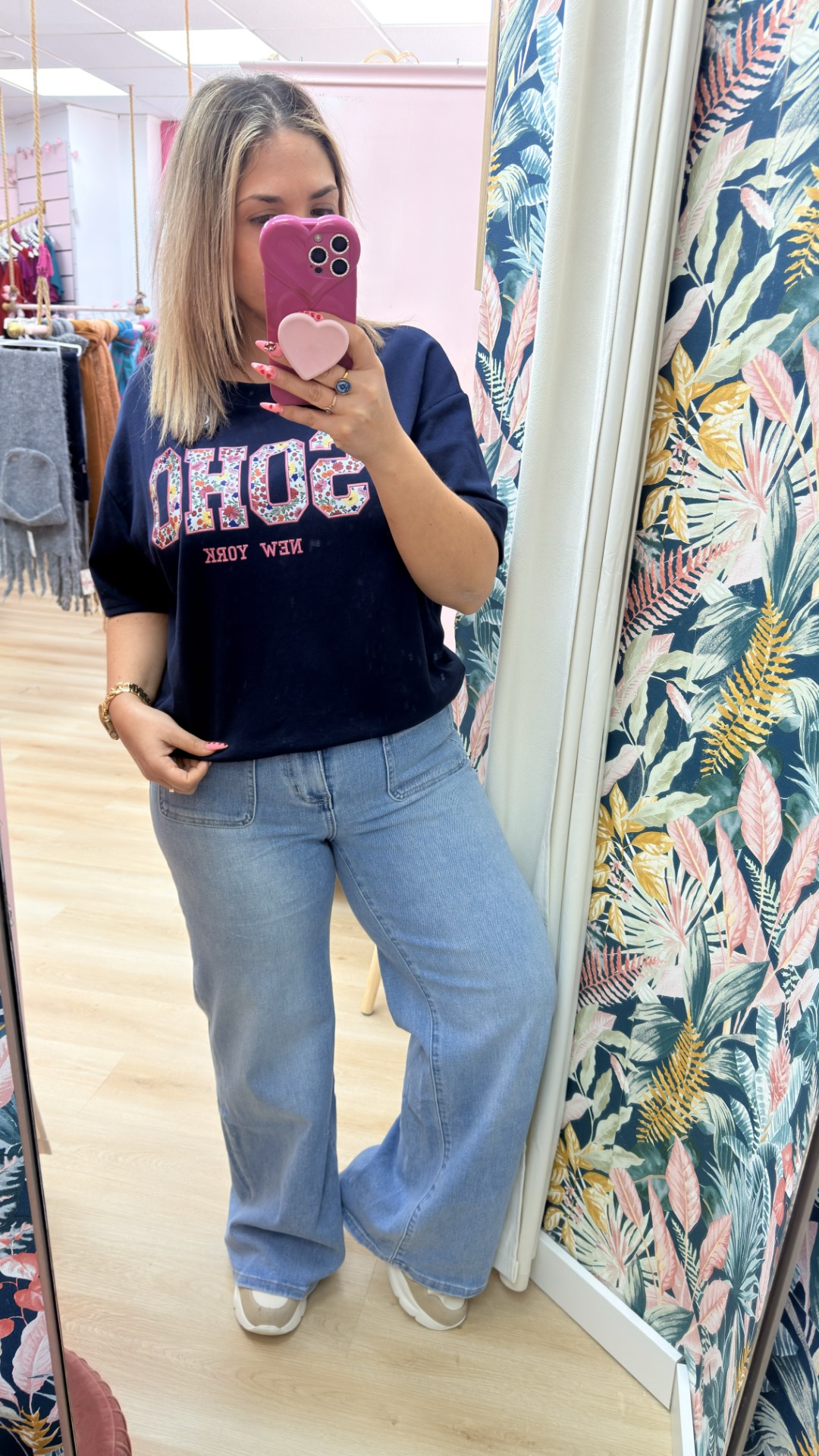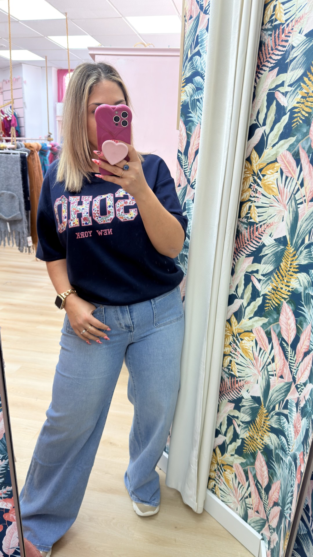 Sudadera elastica de manga corta con palabra chic decorada con flores