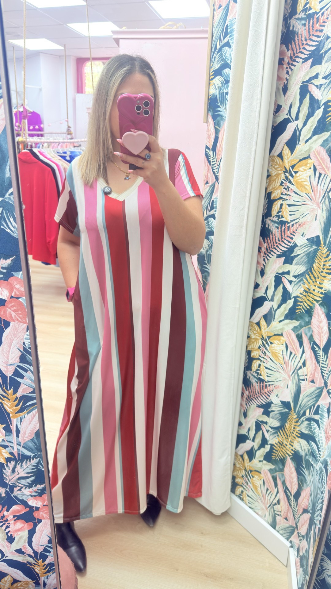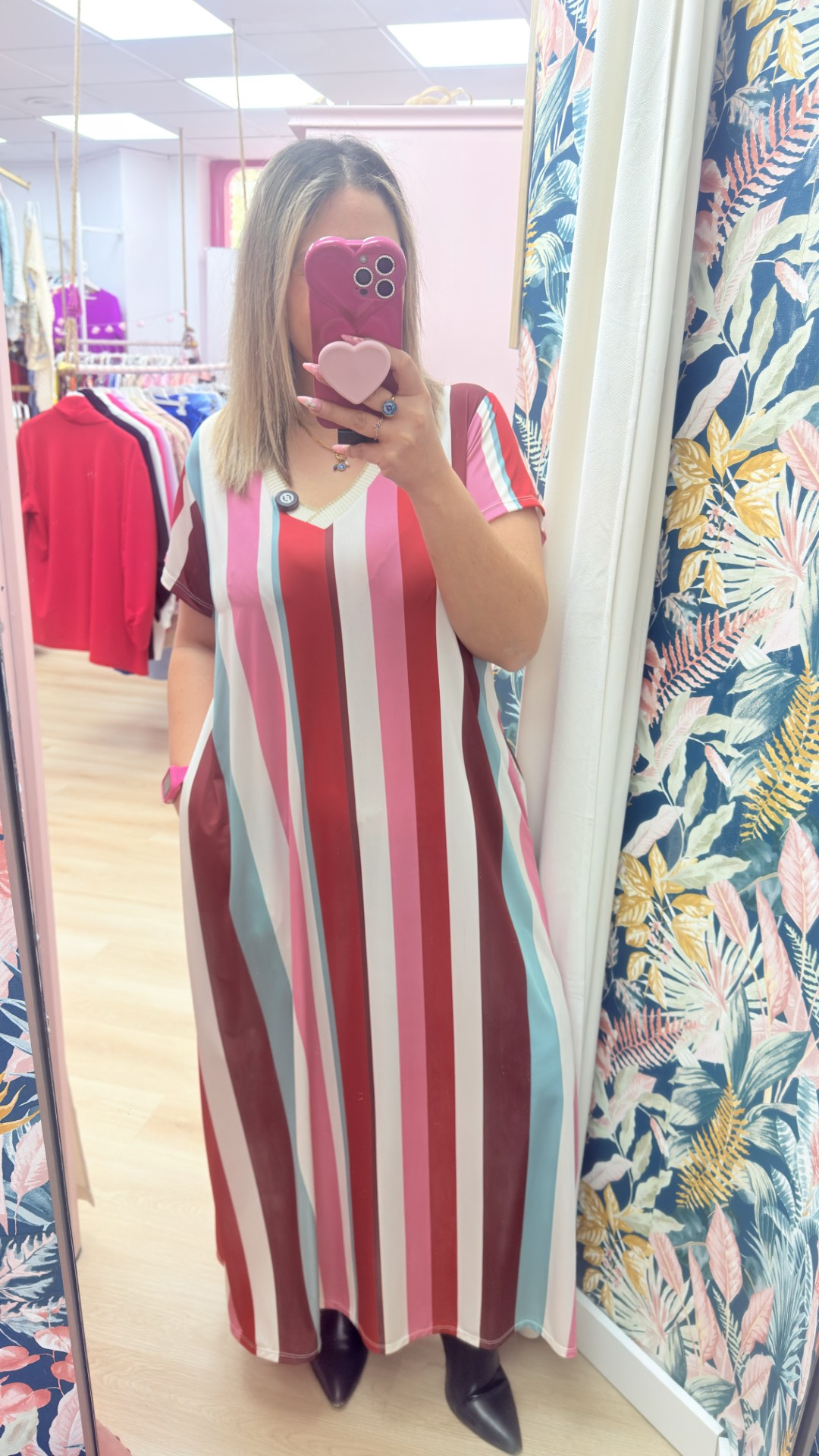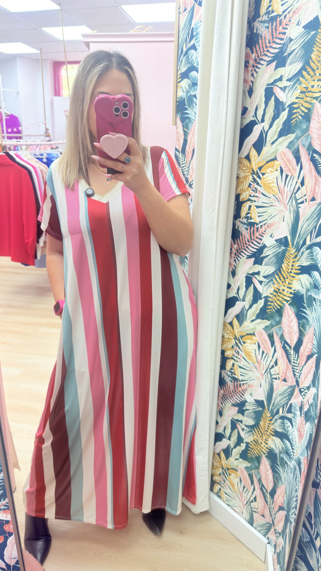 Vestido licra fria rayas rojo